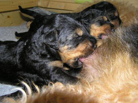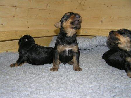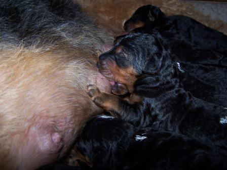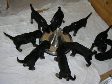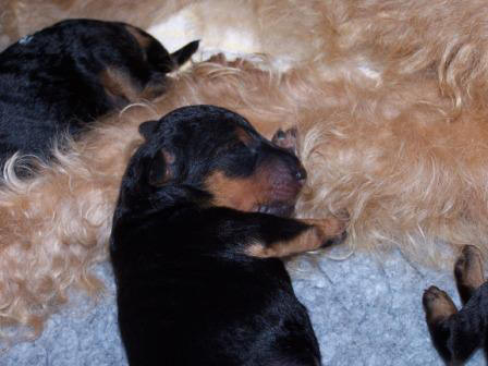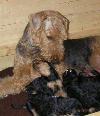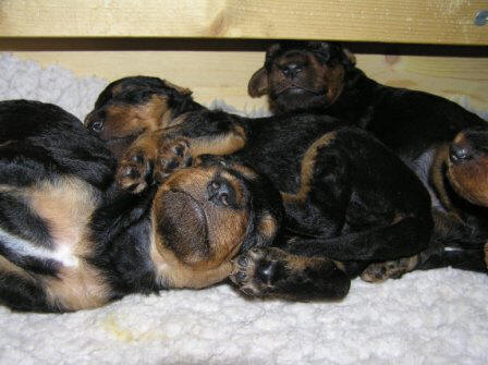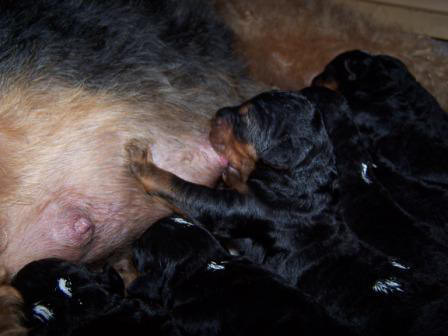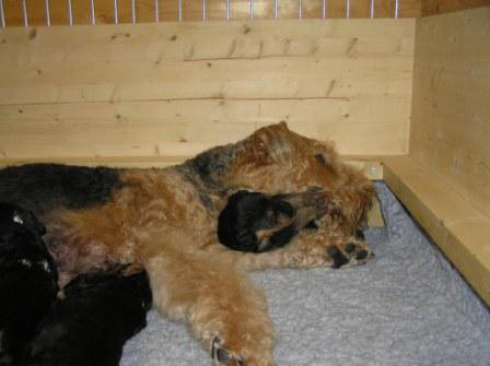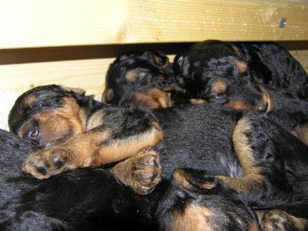 In den frühen Morgenstunden des 5.8.2006 hat Akia 8 Welpen zur Welt gebracht. Es sind sieben Rüden und eine Hündin.