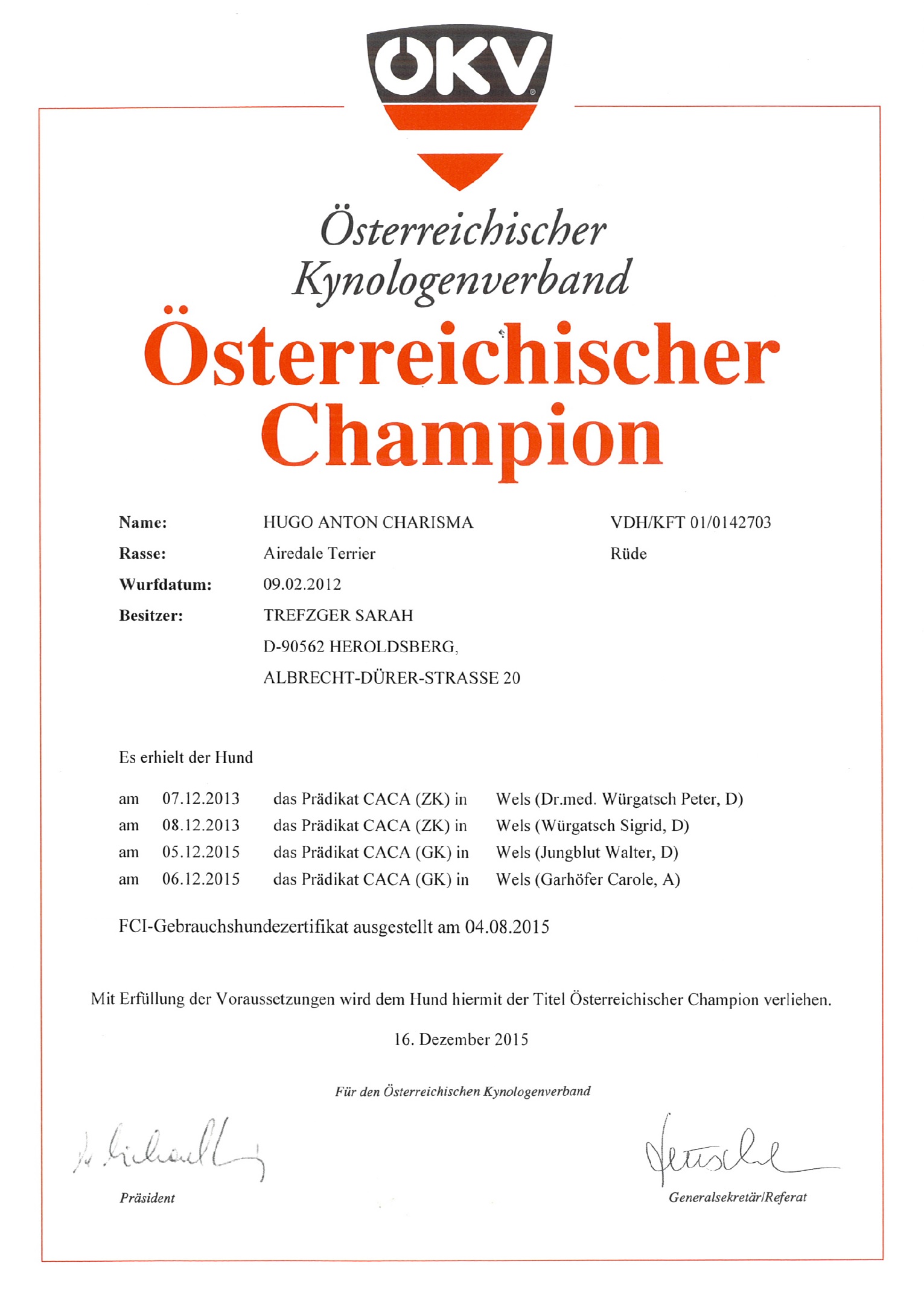 Hugo Anton Charisma - Titel