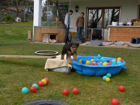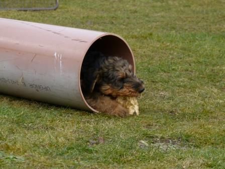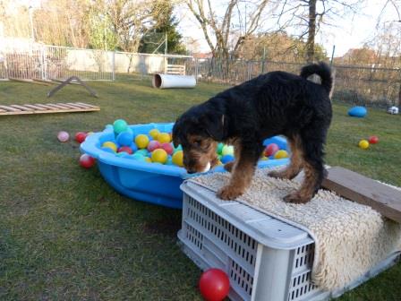 Rüde K2 wagt den ersten Blick aus der Wurfkiste