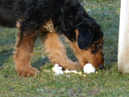 ...um 09.00h beim zweiten Frühstück mit Rindfleisch Karotten und Kartoffeln